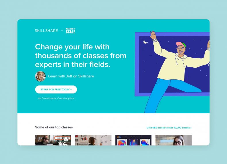 Skillshare is an online education community with over 18,000 online classes and more than 3 million members. I worked with the marketing team at Skillshare to redesign several landing pages that were being used for hundreds of marketing campaigns. Their old landing pages weren’t getting the results the team wanted, and they felt that the design was dark, outdated and generic, which was completely out of line with their brand values.